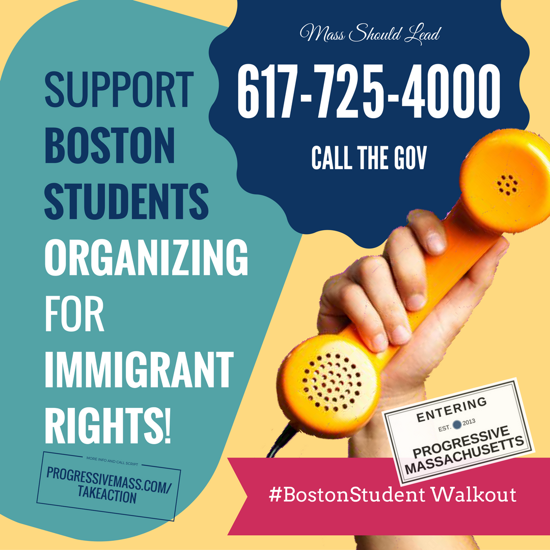 "I'm a Massachusetts voter calling in support of Boston students walking out today, and I call on you to act on their demands. We can make changes right here in Massachusetts: as our governor, please commit to make Massachusetts a TRUST Act/sanctuary state and commit to protecting and funding PUBLIC education."